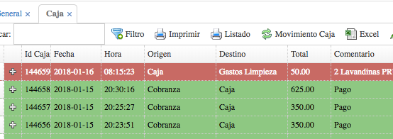 Una vez en el listado de Caja debemos utilizar el Boton ‘Movimientos de Caja’