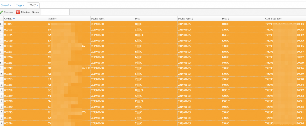 1) Debera ingresar al Menu: Varios>PMC , revisar que figuren todos los registros en color naranja